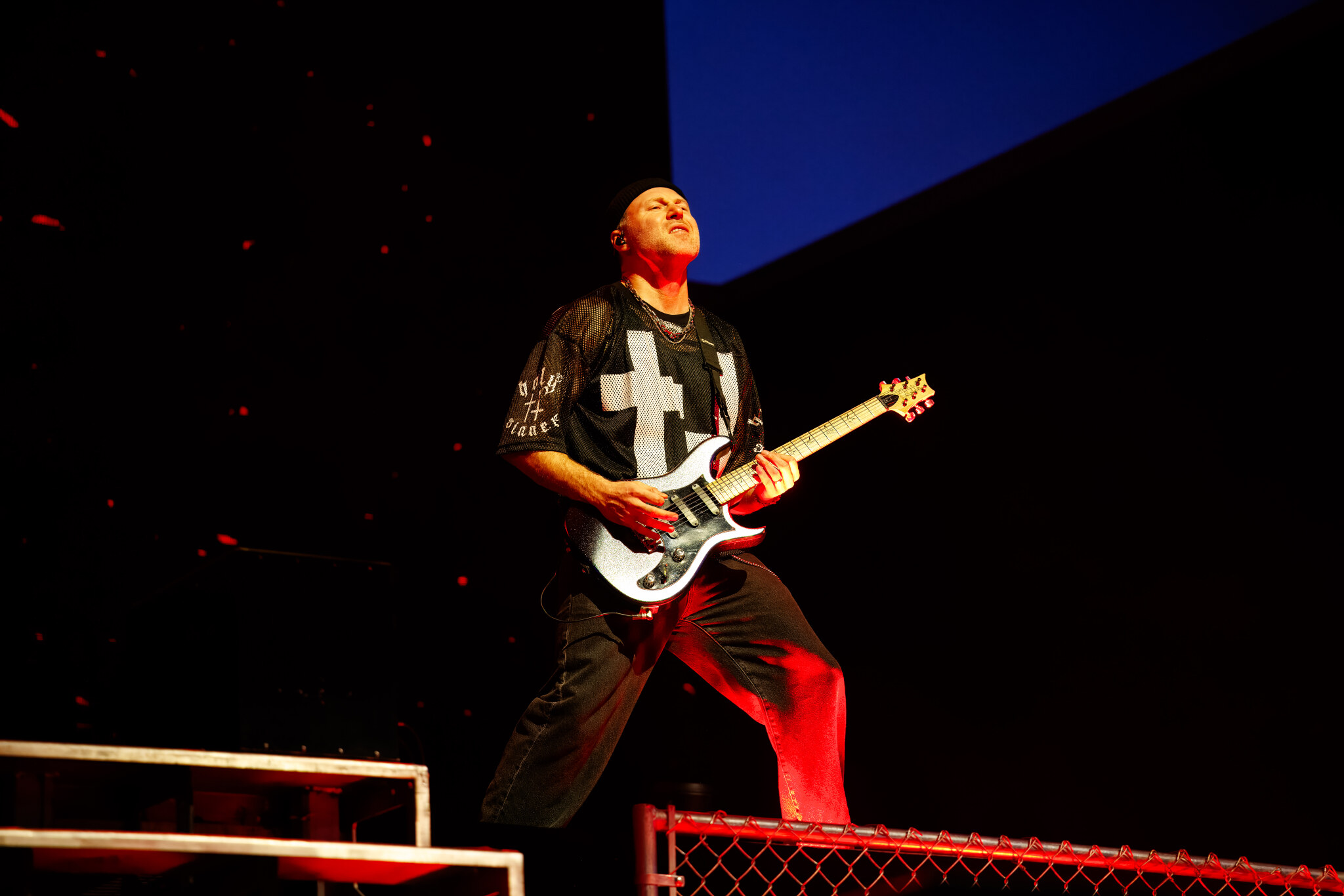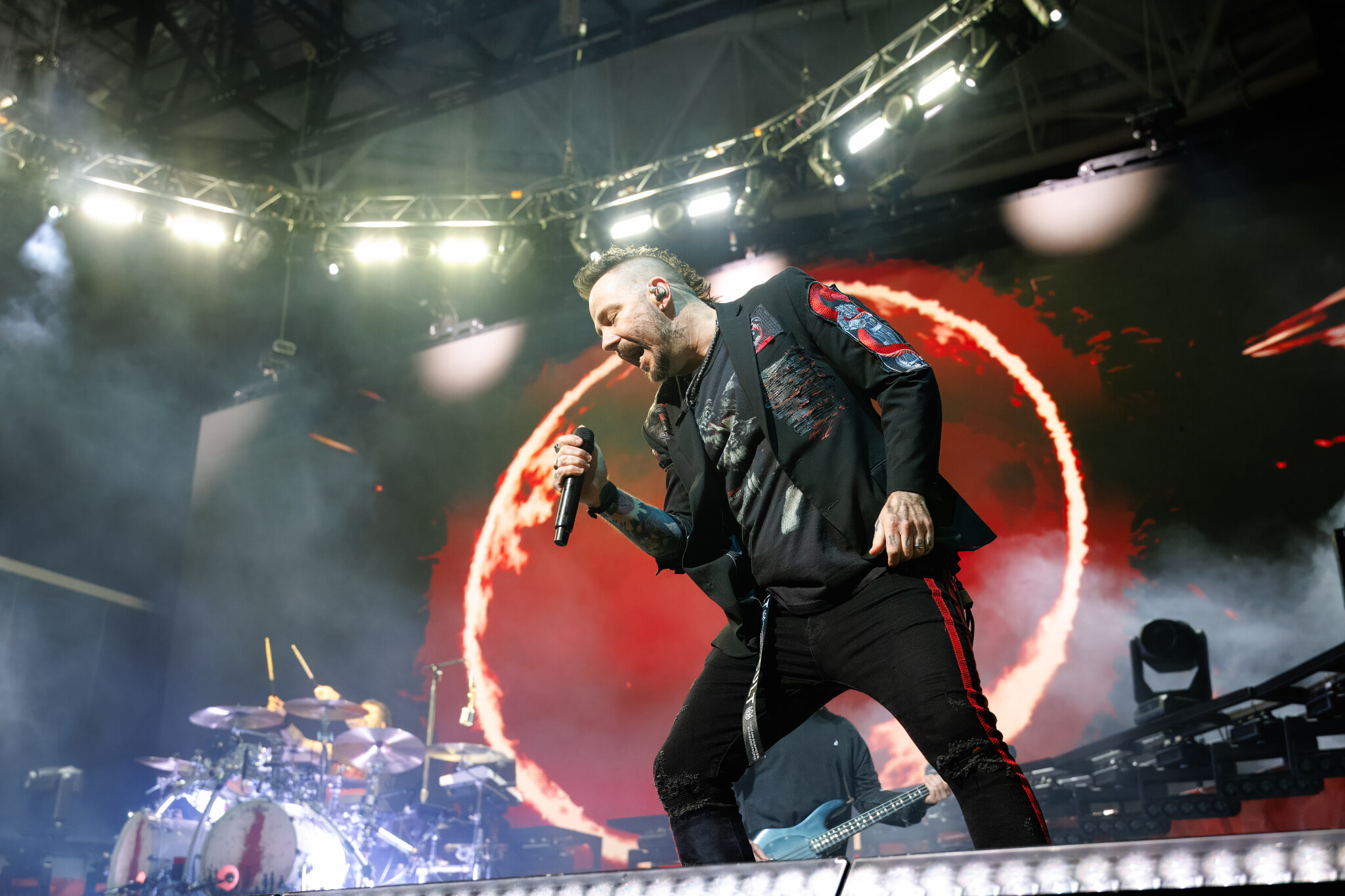 Finally, the evening crescendoed with the headlining act, Three Days Grace. Originating from Norwood, Ontario (formerly known as Groundswell from 1992-1995) the band has been a powerhouse in the American rock scene since reforming in 1997 under the moniker that we all know them as today. Three Days Grace has held their relevancy by keeping a vigorous touring schedule, as well as releasing eight studio albums to date. Throughout their roster of releases the guys have achieved mass notoriety by producing 20 number one hits on various Billboard Charts and achieving several certified platinum or gold benchmarks. The current lineup includes Neil Sanderson, Barry Stock, Brad Walst, with co-vocalists Matt Walst and Adam Gontier sharing the limelight after the latters return to the band in 2024. Many fans would argue that the decision to pair the two vocalists, rather than replacing Walst in favor of their original front man has led to the emergence of the bands most compelling and powerful sound yet. Their set list was a relentless barrage of hits, including crowd favorites “So Called Life,” “The Mountain,” “Kill Me Fast,” “Apologies,” “Never Too Late” and the iconic “I Hate Everything About You,” which immediately sent the audience into a frenzy upon recognition of the first note.