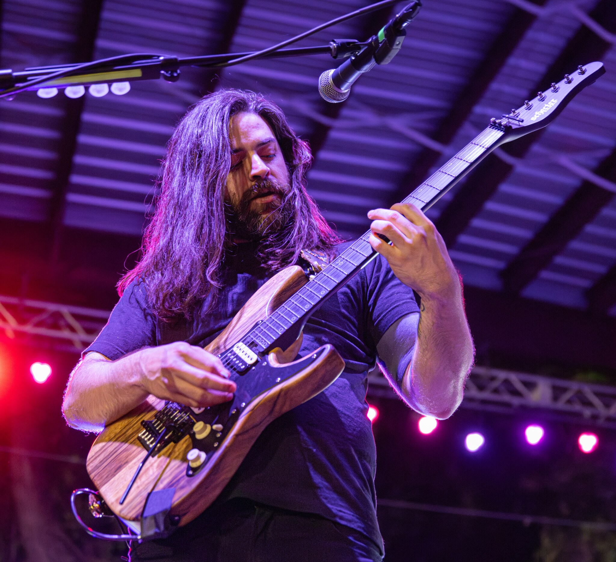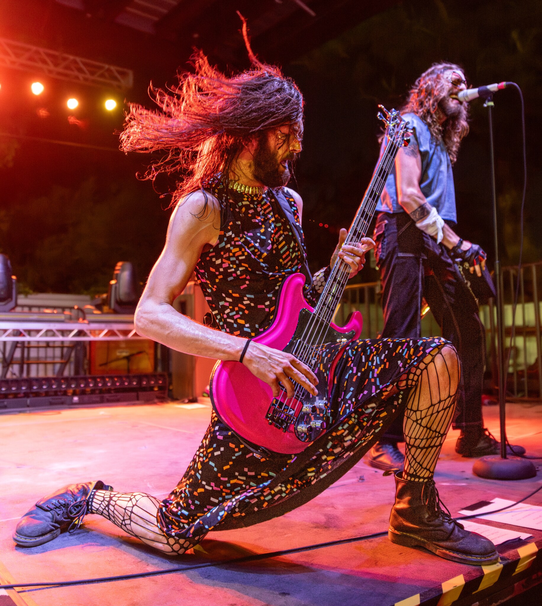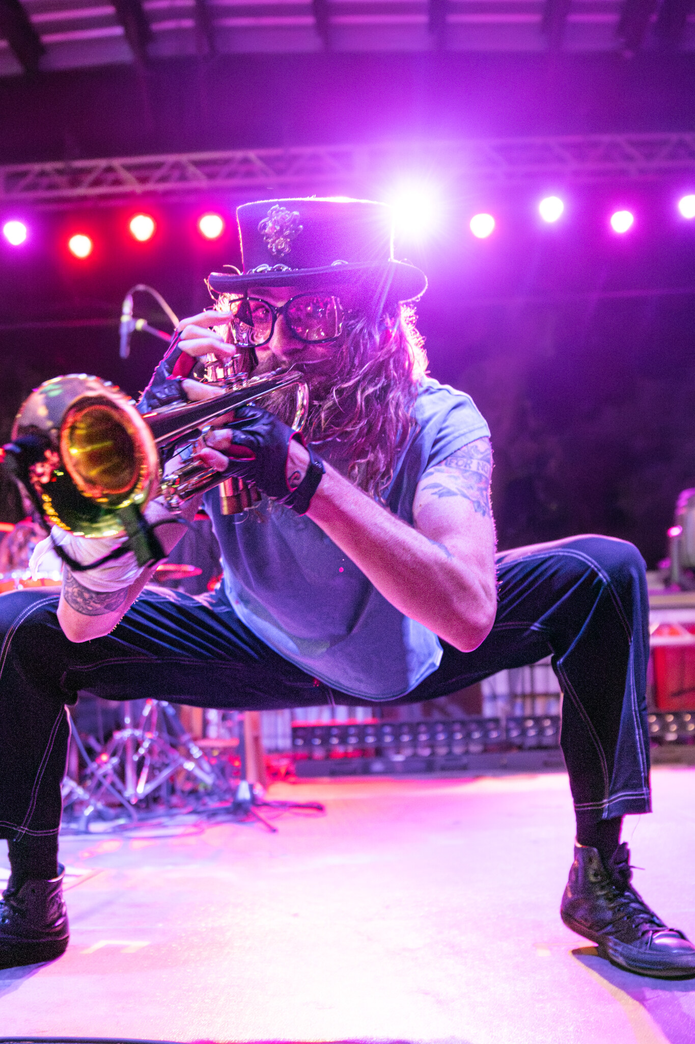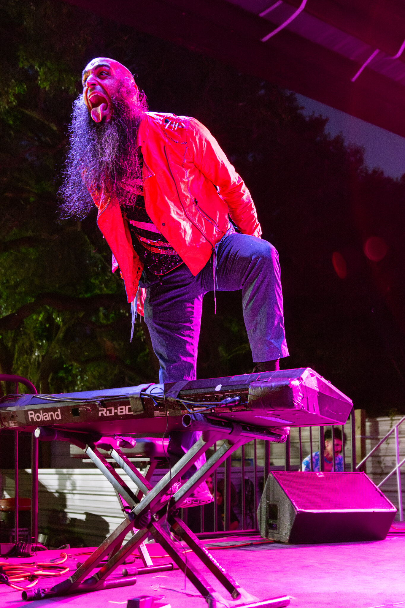 On the other side of the stage, Sky stood atop his keyboard while still playing with his feet and at one point went out into the crowd, still playing, while supported by fans. Devin’s chin served as his guitar’s balancing beam when he removed his jacket mid-set. At the back of the stage, Teddy kept the beat going even when standing up behind the set and coordinating playful interactions with Eric. The band’s message of love, friendship, and togetherness was perfectly catered to the fans in this crowd.