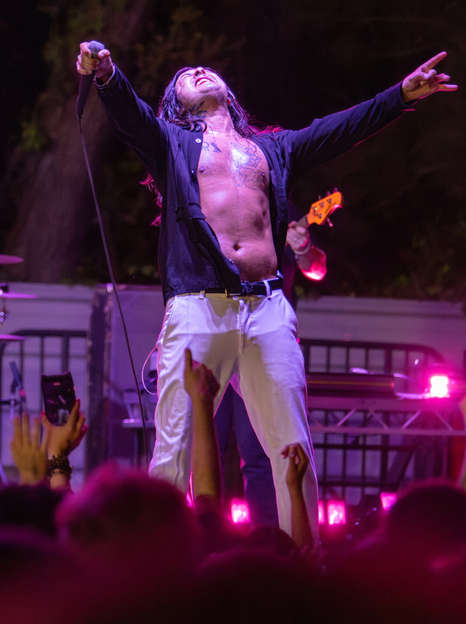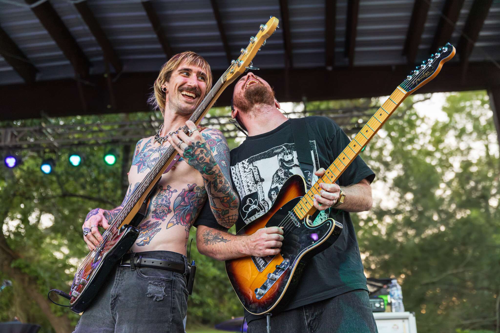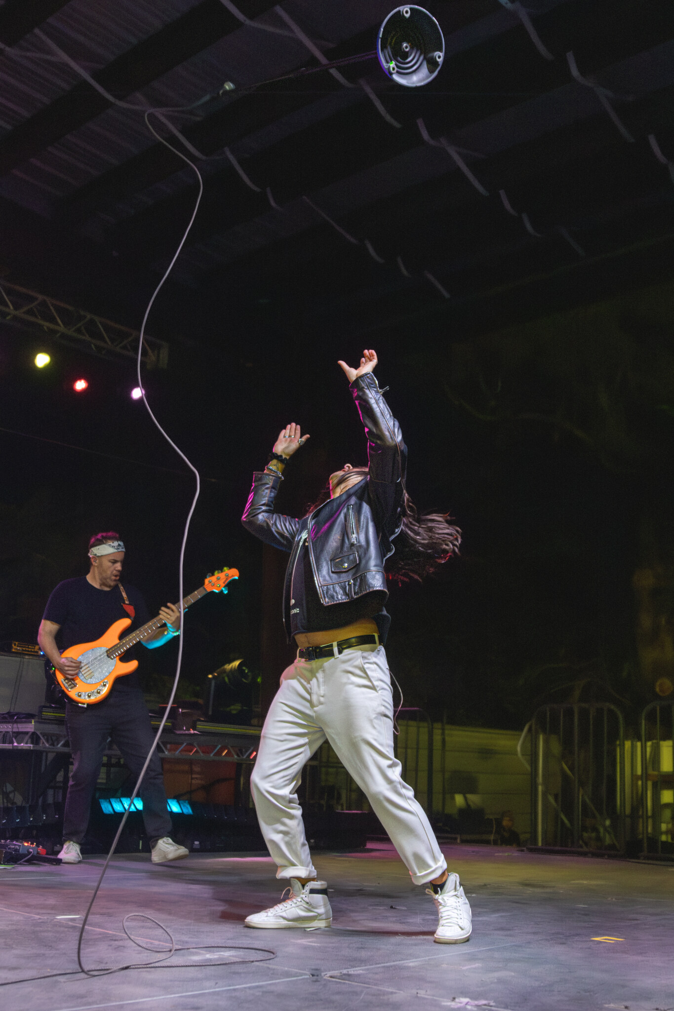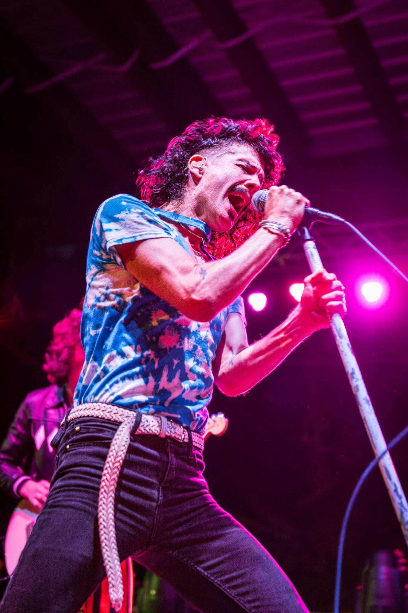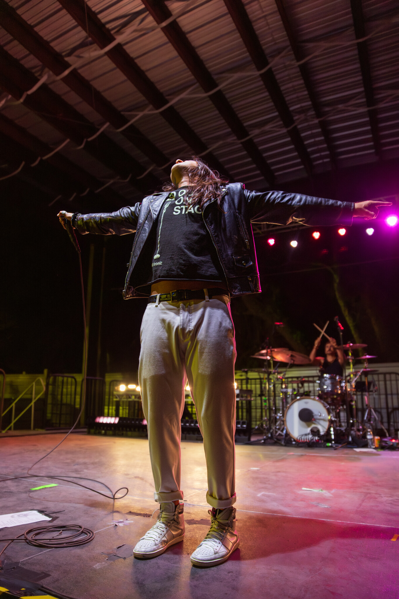 Eric Nally rarely stood in one place for more than a few moments. Between dancing around the stage, eating lit cigarettes, and donning a cymbal to become a literal part of the drum set, he surpassed singer and became an entertainer. But that’s not to say the rest of the band wasn’t just as animated. Trevor and Alex took turns at the edge of the stage crab walking and contorting themselves into awkward positions while still hitting every note.
