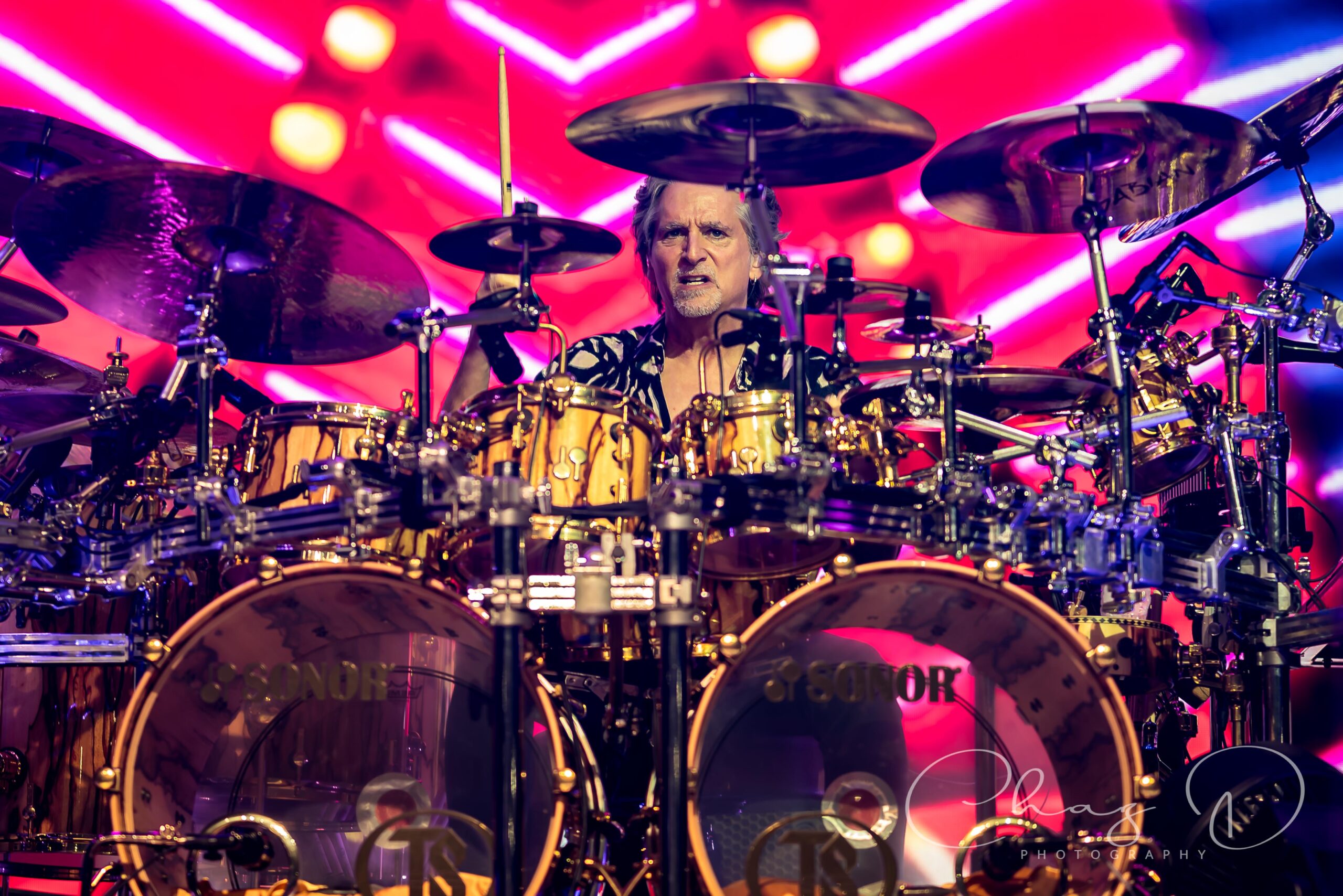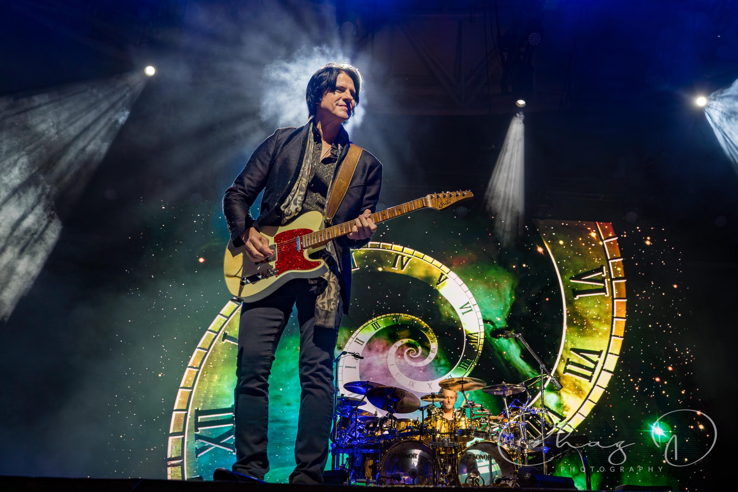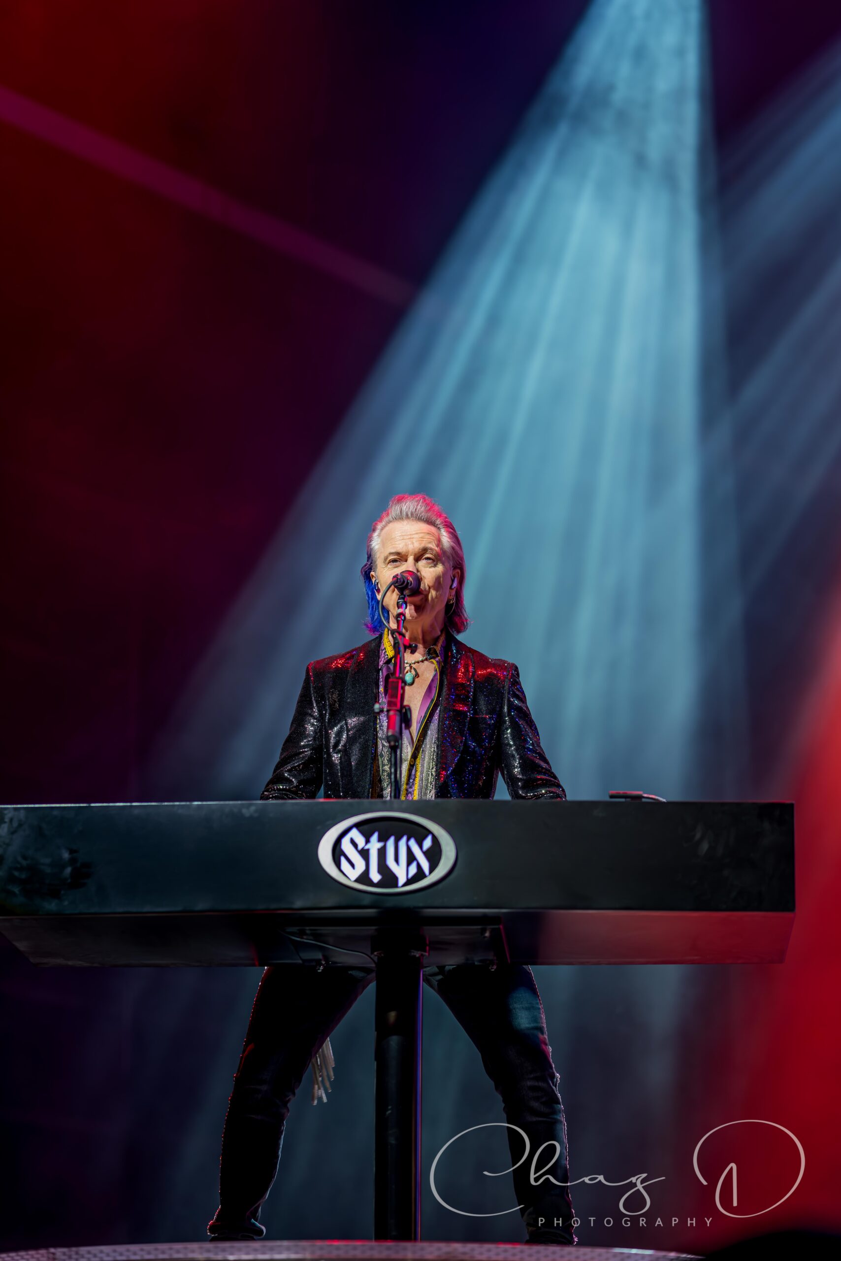 When Styx took over, it was like watching a machine click into perfect calibration. Polished as ever, they delivered a set that felt massive, meticulously dialed in and theatrical, with soaring harmonies and pristine musicianship as always. They opened with a newer song “Build and Destroy” which I found odd, but immediately threw me off kilter by playing “Too much time on my hands”, which is typically held until later in their sets. The forever young, blond coiffed Tommy Shaw, who at 73, still holds the crowd’s attention. Some of that spotlight, however, is hard to keep off of keyboard commander and vocalist Lawrence Gowan, the Canadian showman that took Dennis DeYoung’s place in 1999. His flashy outfits and keyboard lift spinning is a sight to behold. He’s still the only keyboard player I’ve ever seen that will spin 360 while playing, often with his back and derrière facing the audience. His brother Terry, almost as flashy, has been playing bass in Styx since early 2024 and is backed on the low-end by Todd Sucherman on drums. Sucherman is, in my humble opinion, one of the most underrated and under-appreciated drummers in music. To us civilians anyway. He is what some would call, a drummer’s drummer. James “JY” Young, the only other original member left on stage, still has that edgy mystique about him, even at 76.