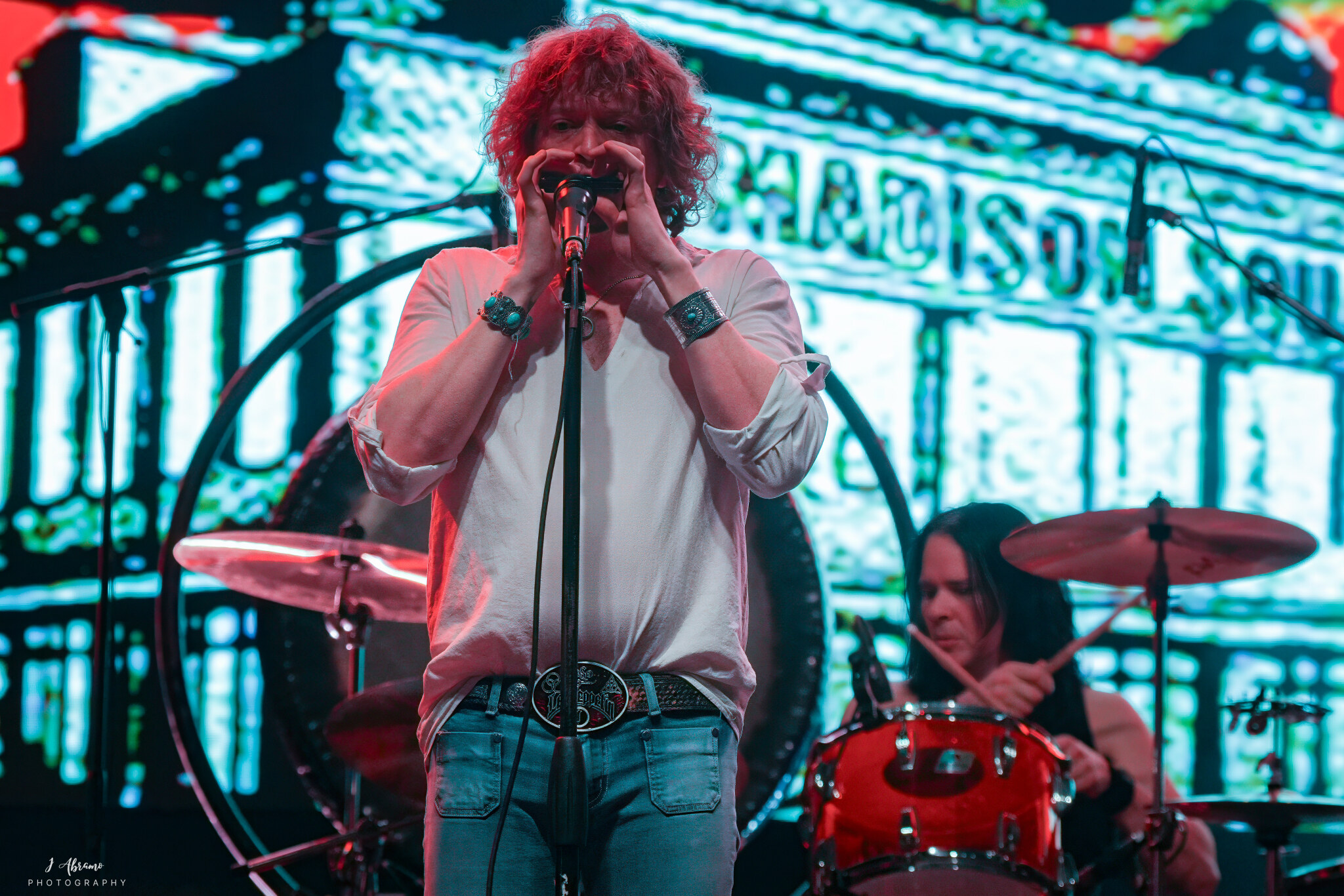 I enjoy mingling with the audience while photographing, and I spoke with several fans to understand what keeps them loyal to Led Zeppelin. One man, John, was celebrating his 59th birthday—his daughter Riley gave him tickets as a gift. When Riley was a baby, John would play Led Zeppelin’s debut album, and she’d “rock out in her car seat.” Since then, both have been devoted fans. Another fan, Dave (61), originally from Pittsburgh, grew up listening to Led Zeppelin with his childhood friend Steve, who sadly passed away at 18. To honor Steve’s memory, Dave has always remained a dedicated Zeppelin fan and truly appreciates Zoso’s attention to detail in every note. Among the youngest fans I met was Harrison (17), attending the concert with his mother, Caroline. It was great seeing them enjoy their first Zoso show together.