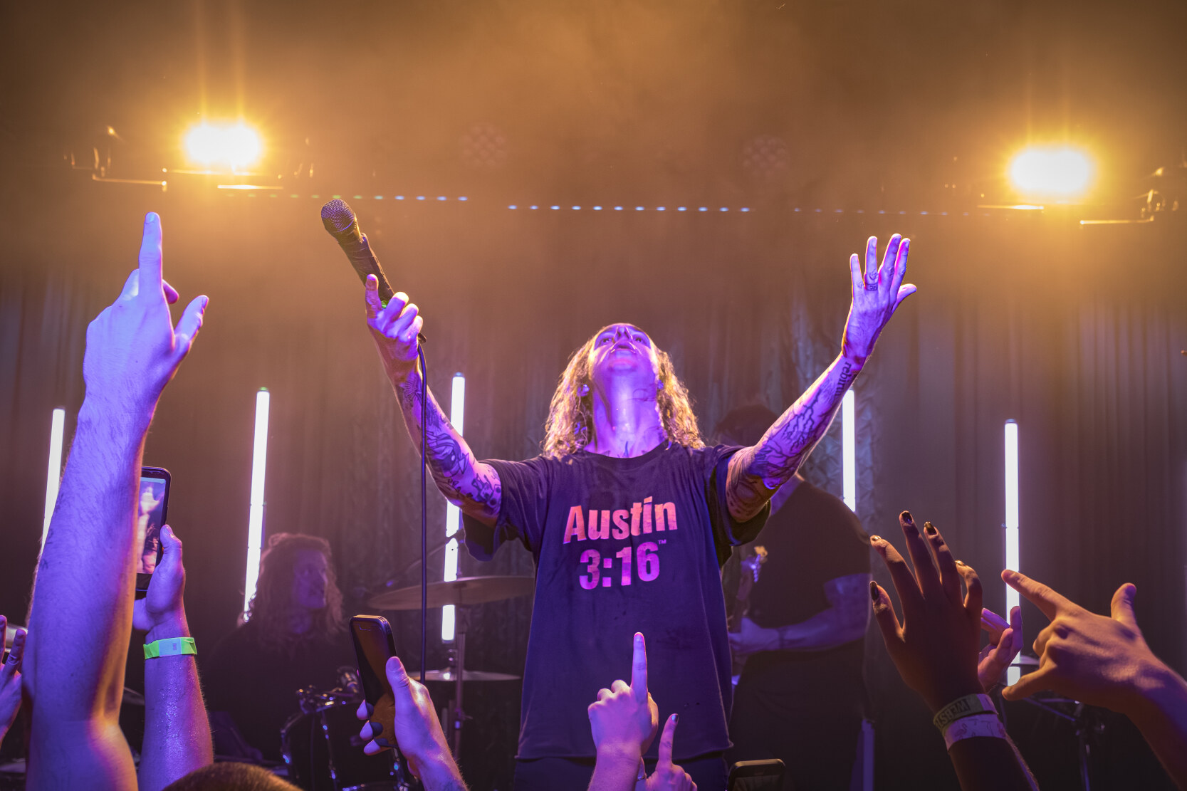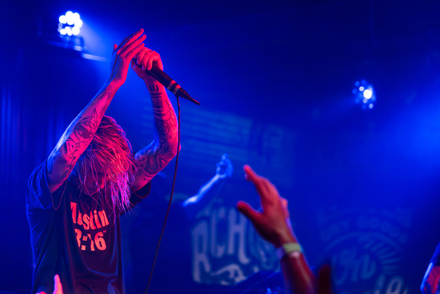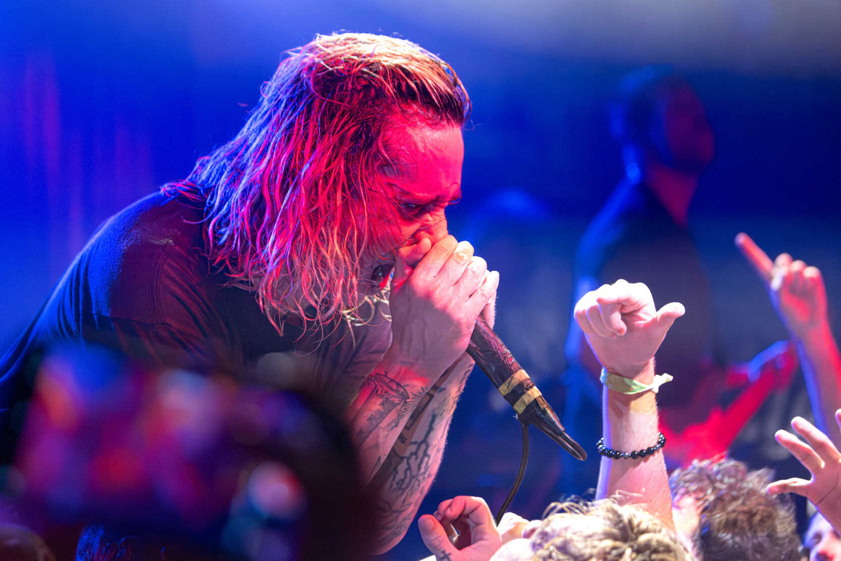 It was hot and packed, but everyone in the room went berserk when Underoath took the stage. Their set opened with a 2006 throwback, “In Regards to Myself” off of Define the Great Line. Their set catered to new and old fans alike spanning from their most recent album, The Place After This One, all the way back to when Spencer took over vocals in 2004. The room seemed to swell from the collective breaths of fans singing along to tracks like “All The Love Is Gone,” “Young and Aspiring,” and “Hallelujah.” It got uncomfortably hot with how many people were in the room, but that didn’t deter the crowd from forming pits and moshing to the aggressive breakdowns the metalcore band has become known for.