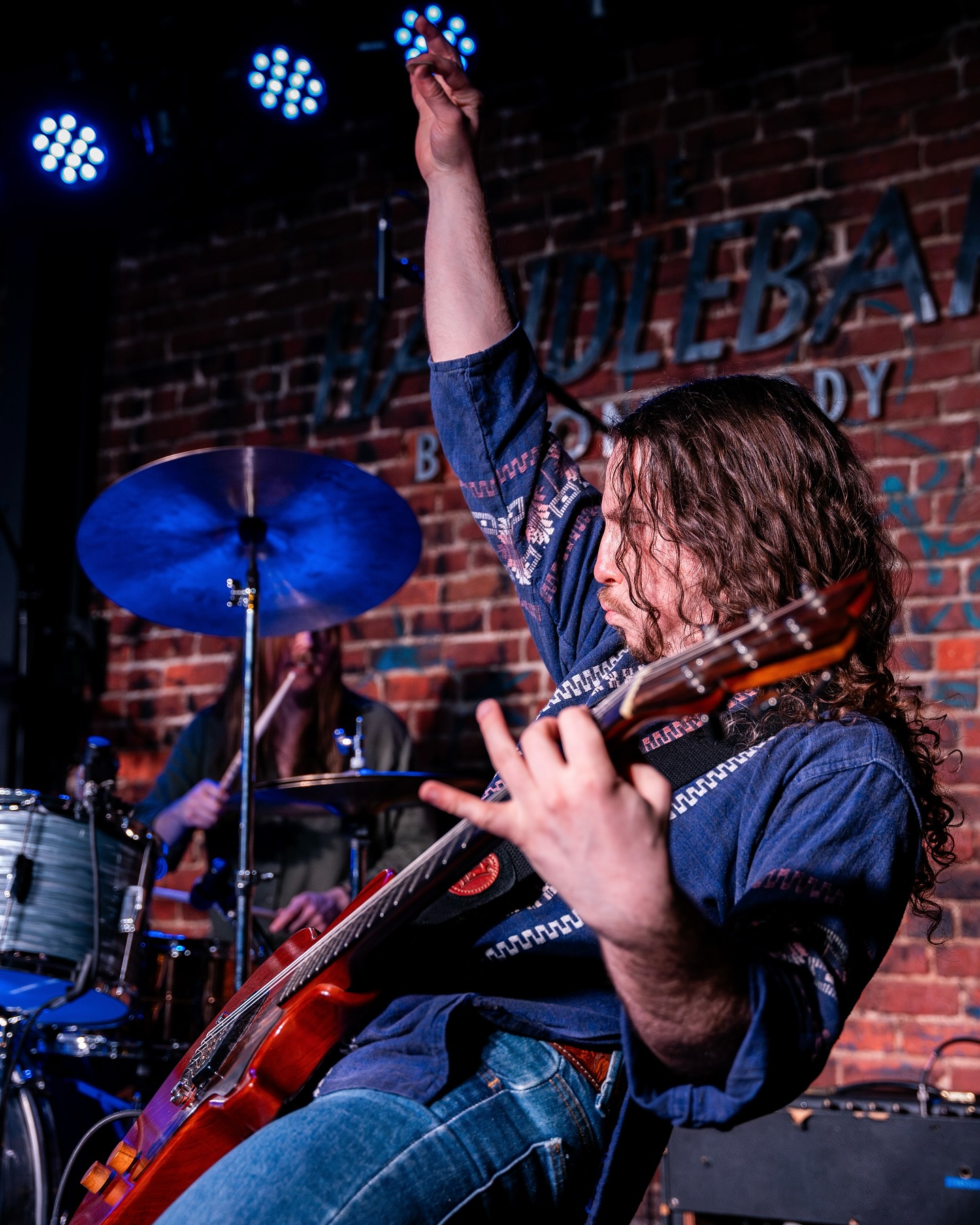 I began by mentioning that one of their recordings was done at our beloved Jannus Landing. “Oh yeah, that was really early on. I think we were only together for about three months when we recorded that.” And although they considered it “really rough”, it’s quite impressive, especially when you consider the short time they had been playing as a band at that point. As interviewer, I of course had to query them on their musical influences, some of which are the obvious 70’s classic rock bands like Zeppelin and The Small Faces, they impressed me with influences from way back in the 30’s and 40’s. “That far back?” I asked excitedly “Like who?”. “Oh, I definitely consider Robert Johnson and Django Reinhardt as big influences”. Both being early blues and guitar virtuosos I assumed that Armstrong was behind that exuberant answer. Also mentioned were jazz composer and “genius” Sun Ra, and the more current heavy hitters Rival Sons and Dirty Honey, the latter being a band they toured with in the Fall of 2024. I felt obligated to mention how impressive Jay Buchanan (Rival Sons) is as a singer, and how he may actually be “too good”. “Oh, he’s a beast” chimed in Barcus, (I assumed), as he seemed taken back a bit by my acknowledgement of his “rougher” timbre being more preferred in a singers voice. I favor a little bit of “soul” and “gravel” which the appreciative Mr. Barcus has in spades.