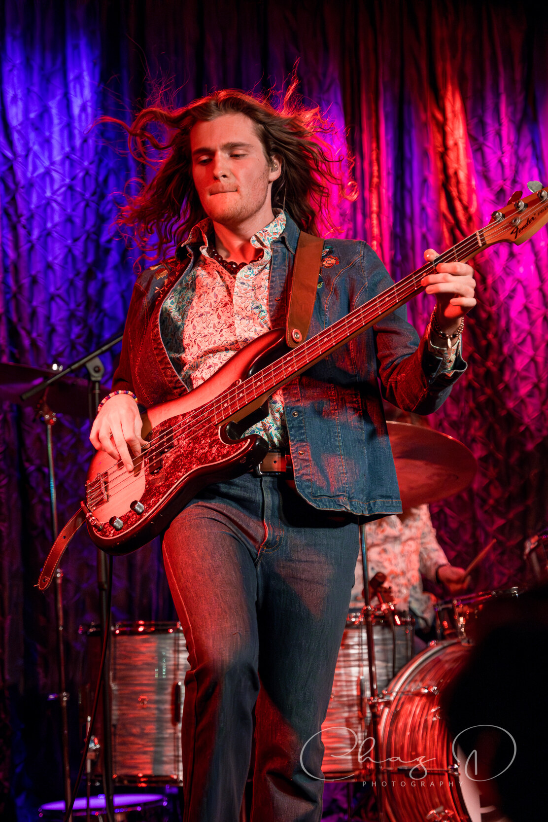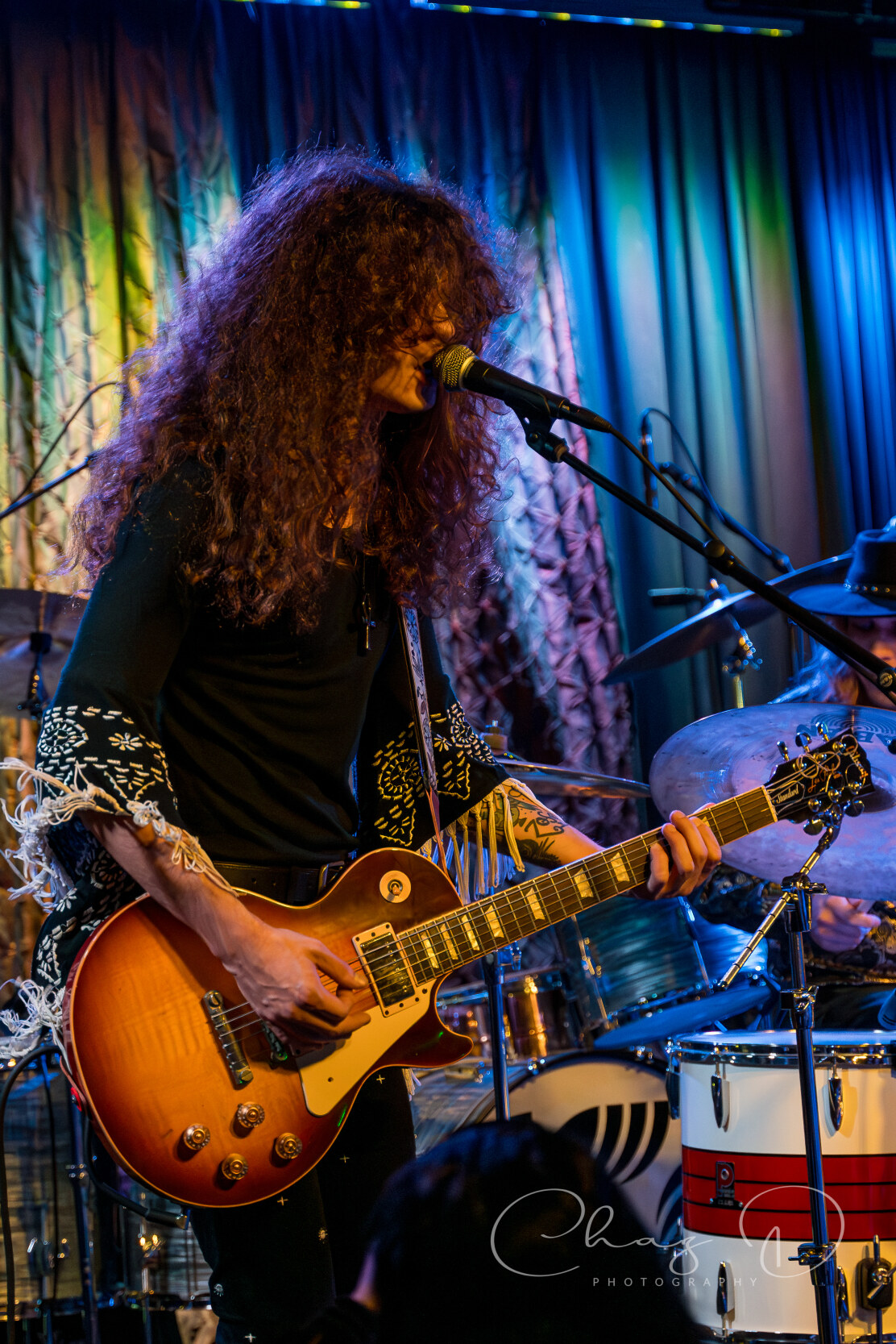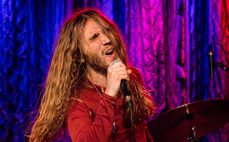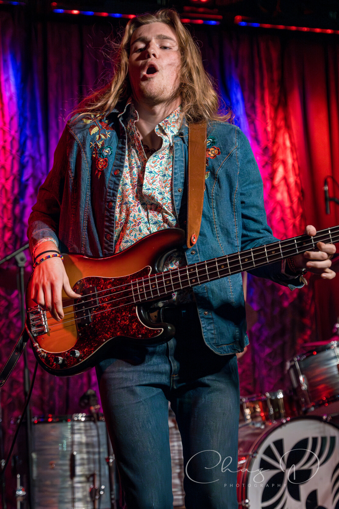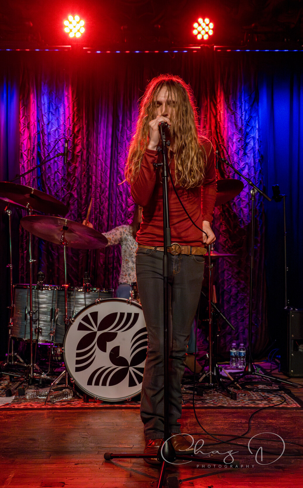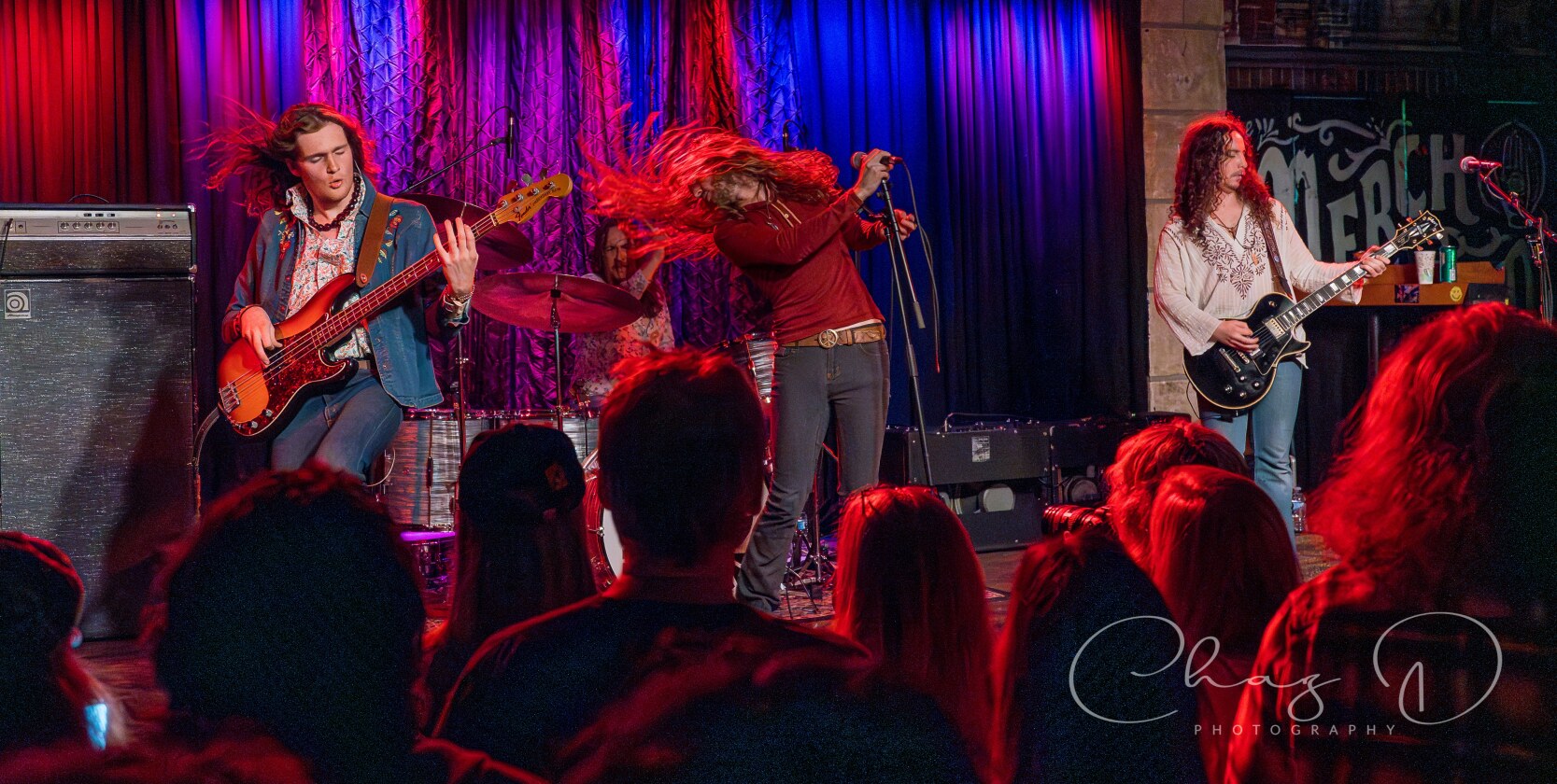 The quartet, of what I like to refer to as hair-farmers (they have a lot of hair), is a band that needs to be witnessed live to truly be appreciated. Consisting of vocalist Garrett Barcus, guitarist Tyler Armstrong, bassist Kadin Rea and T.J. Steinwart on drums, these four young lads play with the old soul of early 60’s to mid 70’s bands like The Small Faces and Bad Company. Barcus slithered and grooved about the stage while showcasing his impressive vocal range, from underneath a drape of hair. The tall, slender singer in 70’s style garb, is as visibly appealing as he is vocally. The youngest, and newest member of the group Rea, aptly held down the bottom end on bass, with swanky charisma (the kids call it riz) and hair that could be sponsored by Pantene. Keeping in perfect time with Rea was drummer Steinwart, occasionally supplying fills that some would think more suited for jazz, but he melded effortlessly into Feel’s rock arrangements.