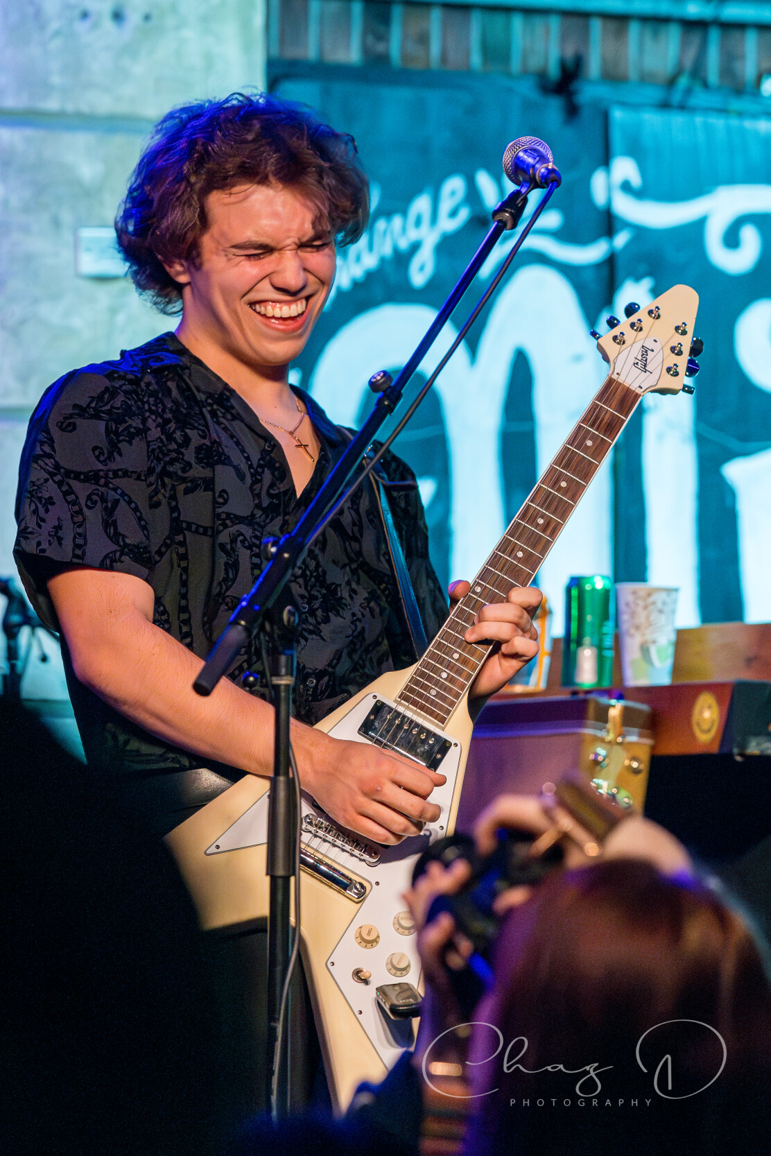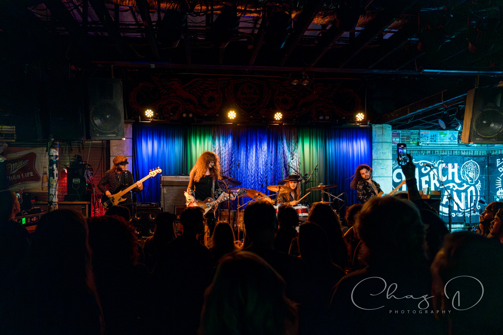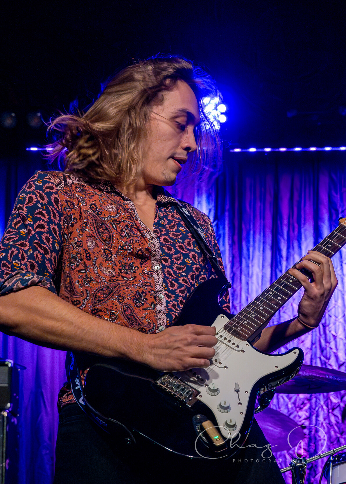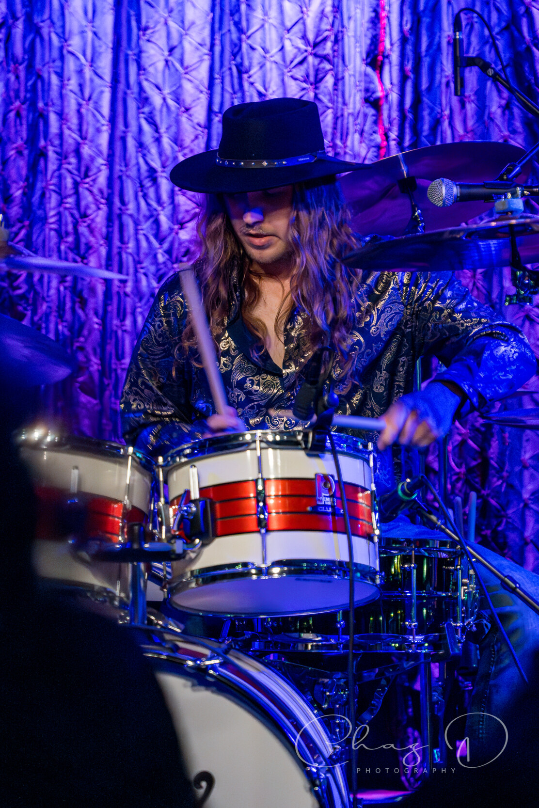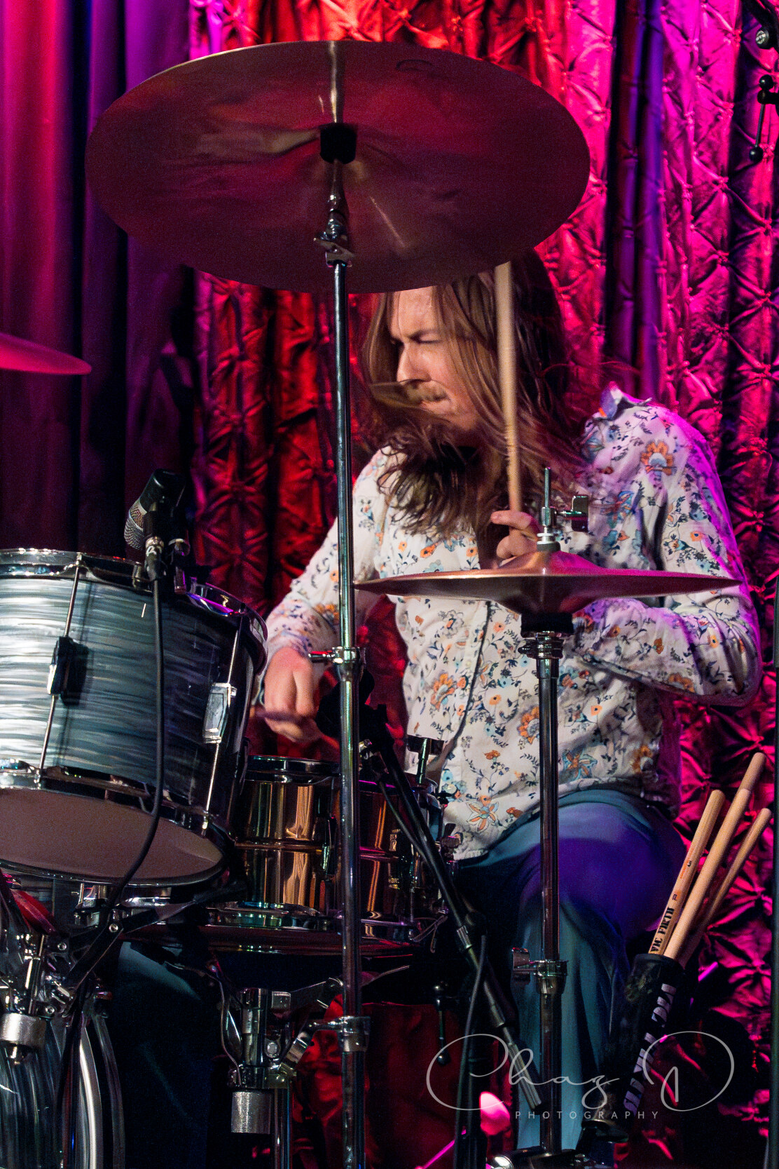The quartet, of what I like to refer to as hair-farmers (they have a lot of hair), is a band that needs to be witnessed live to truly be appreciated. Consisting of vocalist Garrett Barcus, guitarist Tyler Armstrong, bassist Kadin Rea and T.J. Steinwart on drums, these four young lads play with the old soul of early 60’s to mid 70’s bands like The Small Faces and Bad Company. Barcus slithered and grooved about the stage while showcasing his impressive vocal range, from underneath a drape of hair. The tall, slender singer in 70’s style garb, is as visibly appealing as he is vocally. The youngest, and newest member of the group Rea, aptly held down the bottom end on bass, with swanky charisma (the kids call it riz) and hair that could be sponsored by Pantene. Keeping in perfect time with Rea was drummer Steinwart, occasionally supplying fills that some would think more suited for jazz, but he melded effortlessly into Feel’s rock arrangements.