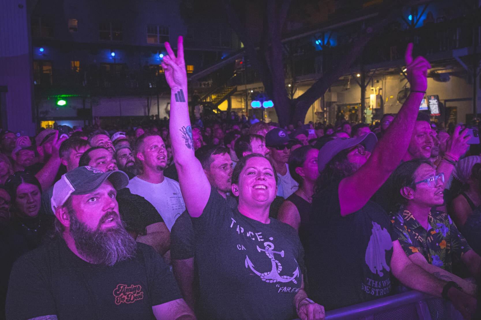 Everything Thrice does feels deeply intentional, so it’s only fitting that their setlist was thoughtfully curated to resonate with fans from every era of their 25+ year career. The band took the stage and went right into “Blackout,” the first track off Horizons/West. As I mentioned in my album review, I was really looking forward to hearing this one. It was meant to be heard live with the way it builds and transforms. Just as expected, when the tempo shifts at the bridge, the crowd was ready to join in singing. “Black out the moon, black out the stars, black out the sun” resonated throughout the courtyard at Jannus. It was beautiful. Over a thousand voices became one at that moment.