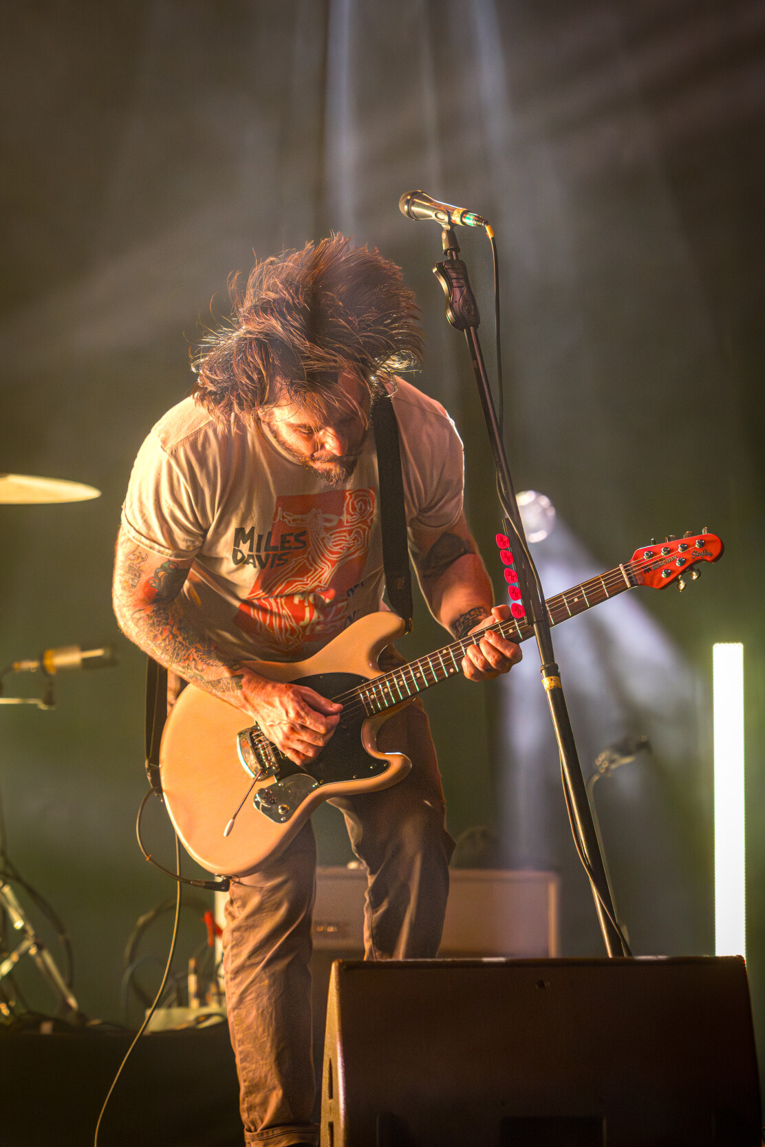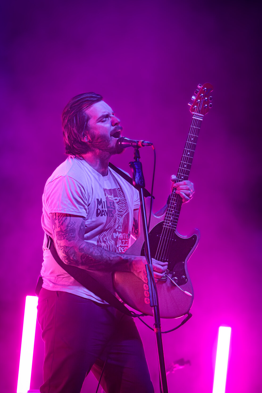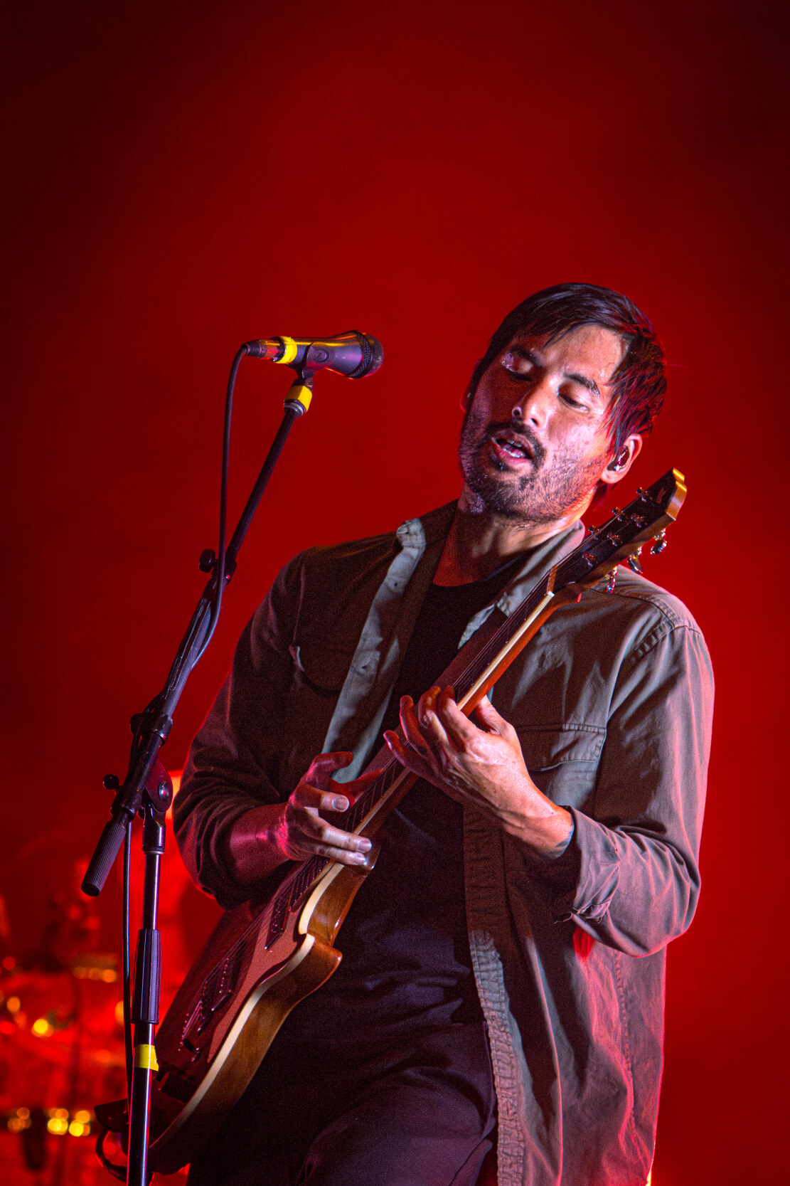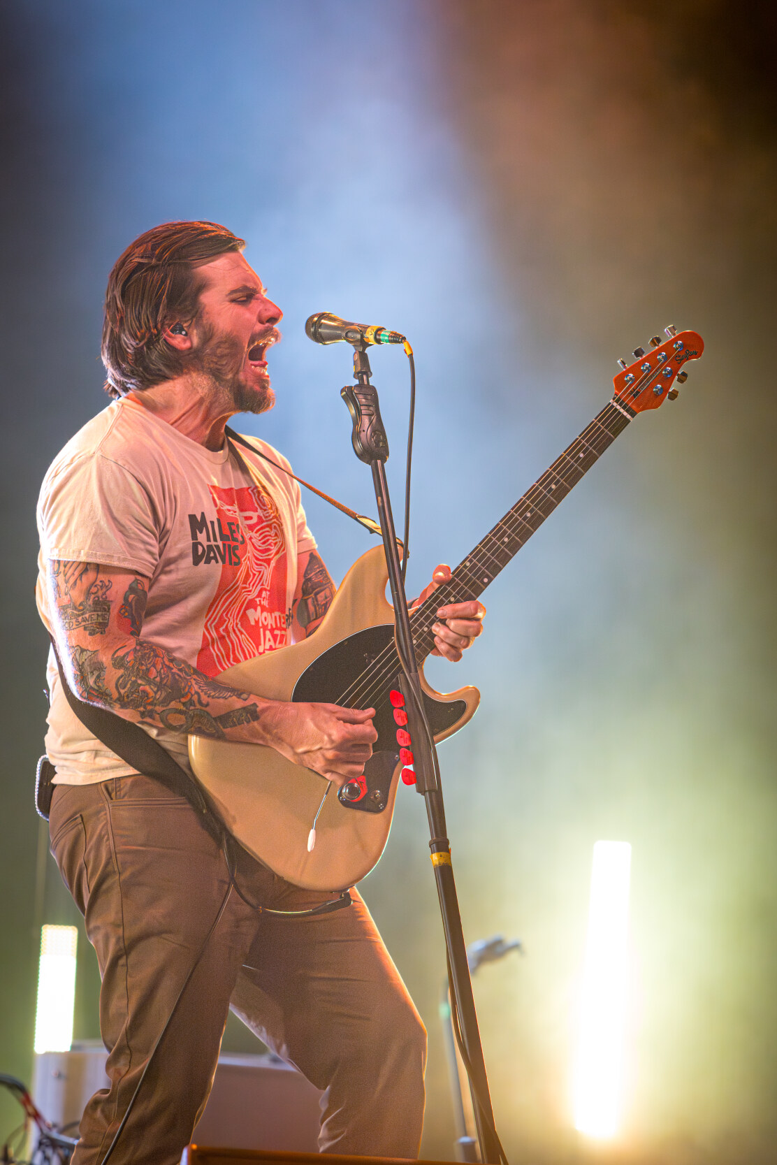 And that was just the beginning. As if that wasn’t a strong enough opening, the band went right into “The Artist in the Ambulance.” Anyone who knows Thrice knows the song and its accompanying album. If you’re unfamiliar, it was one of the definitive albums of the early 2000s post hardcore music scene. Needless to say, the crowd erupted as soon as the first few words left Dustin’s lungs. Their set continued on with selections from the last 22 years. They played everything from lighter tracks like “Beyond the Pines” and “For Miles” to one of their newest and most aggressive tracks, “Gnash.” One of my favorites, “Black Honey,” made it into the set which had me take a break from photographing to just be fully immersed in the moment. The hypnotic rhythm of that opening guitar riff combined with the melancholic rasp of Dustin’s voice is bewitching. Another stand out from the set that I was really looking forward to hearing was “Albatross,” which met and surpassed my expectations. Those who stuck around for their encore were treated to the 7th song of the night off the new album, “Vesper’s Light” as well as one of their greatest, aggressive tracks, “Deadbolt.”