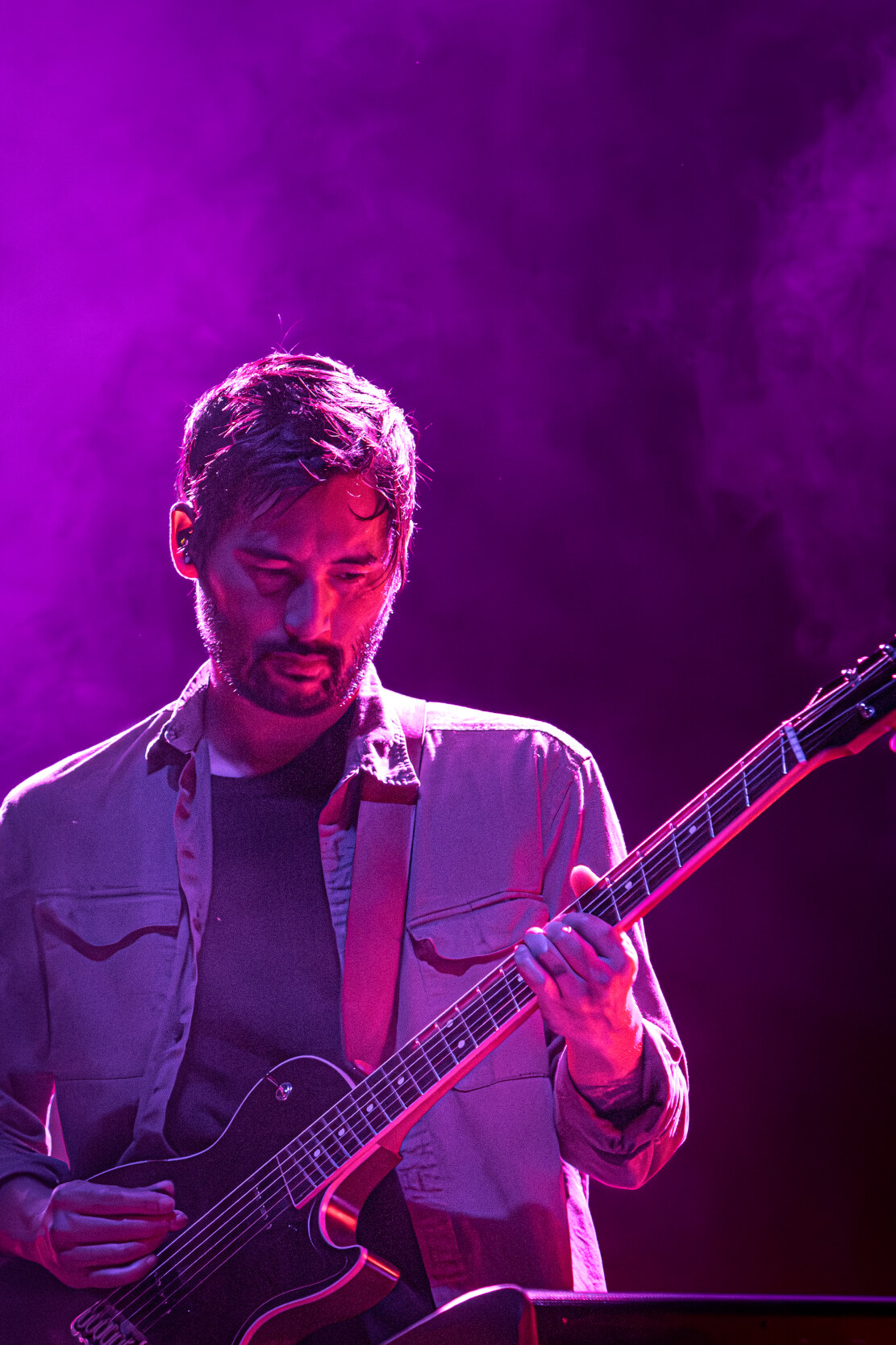 Following Downward’s ethereal opening set, Modern Color took the stage with a surge of unfiltered, raw emotion. This was my first exposure to Modern Color, and they were a blast to photograph. Hailing from South Bay, California, the rock band brought a different kind of weight to the stage. In opposition of the more drawn out, calculated stylings of Downward, Modern Color’s set had an urgency, pairing a melodic grit with a vulnerability that had the crowd moving closer to the stage. What made their set so compelling wasn’t just the heaviness, but the emotion behind it, the warmth and ferocity of the guitars, the precision and drive of the rhythm section, and the impassioned vocals. There was a palpable honesty in the way the band played, every note felt like it meant something. Modern Color served as a perfect transition, bridging the introspective calm of Downward with the emotional gravity that Thrice would bring.