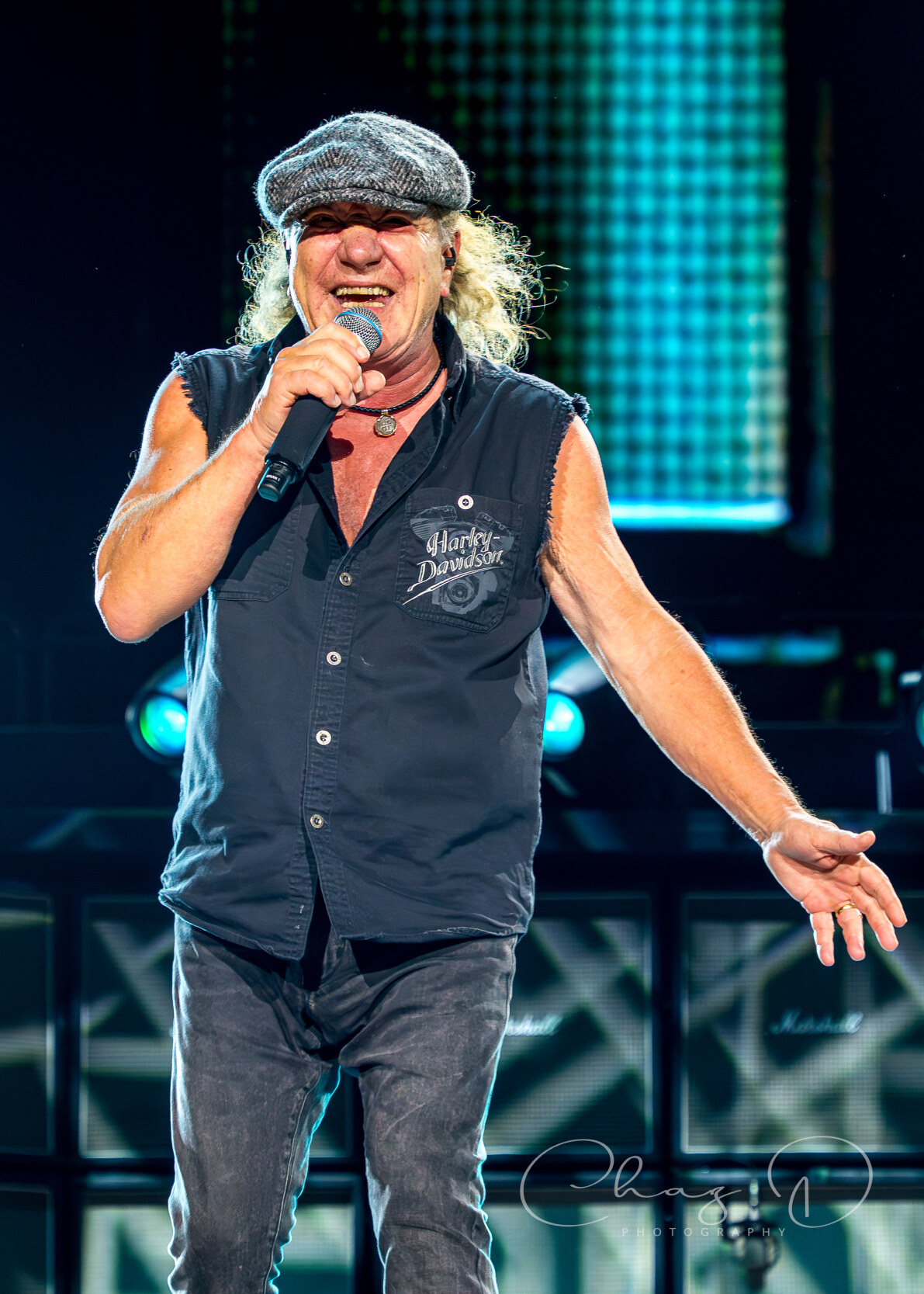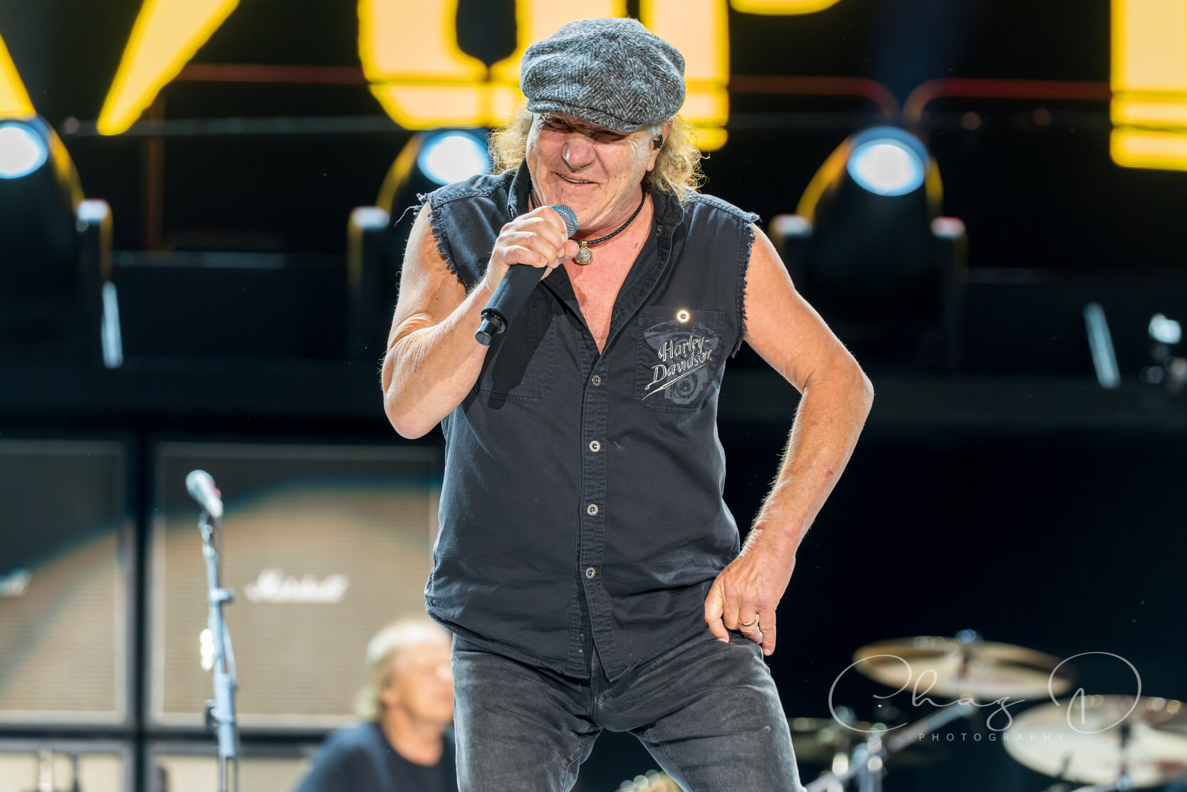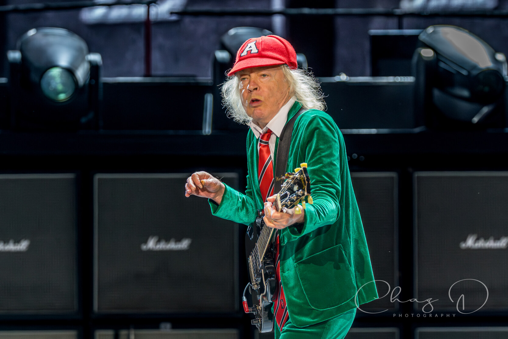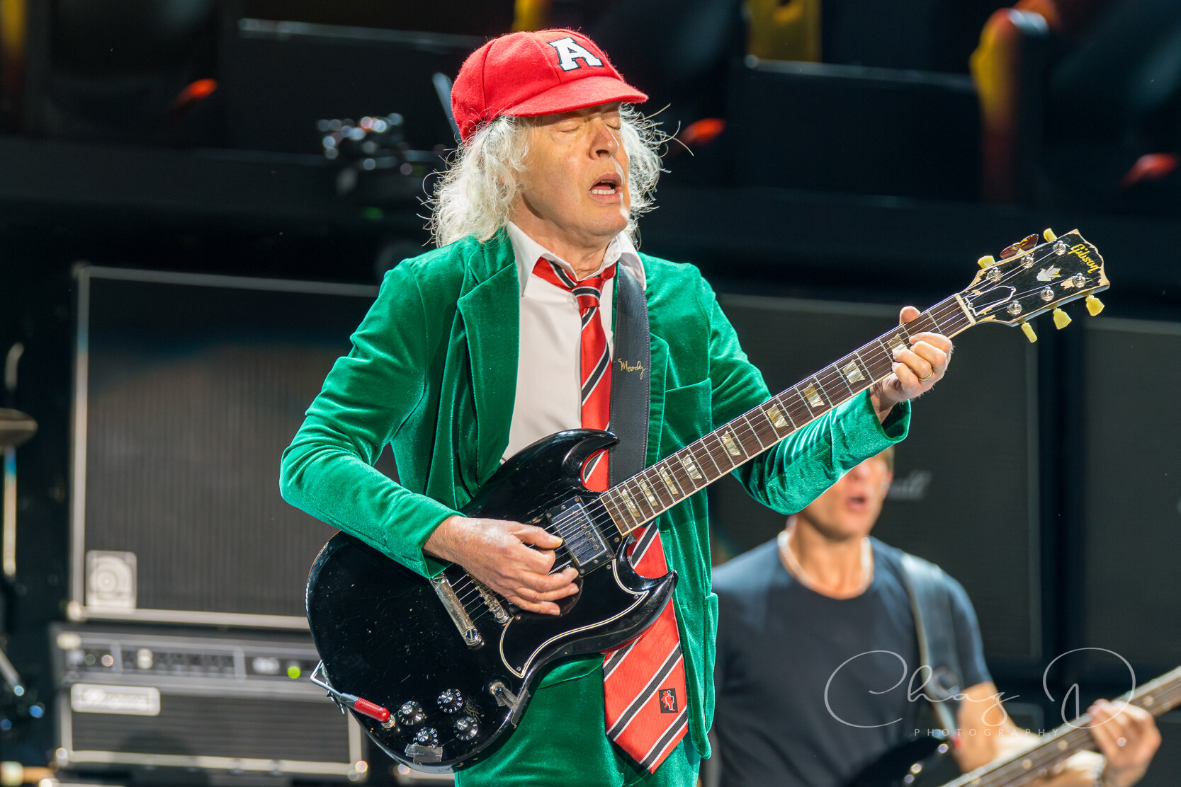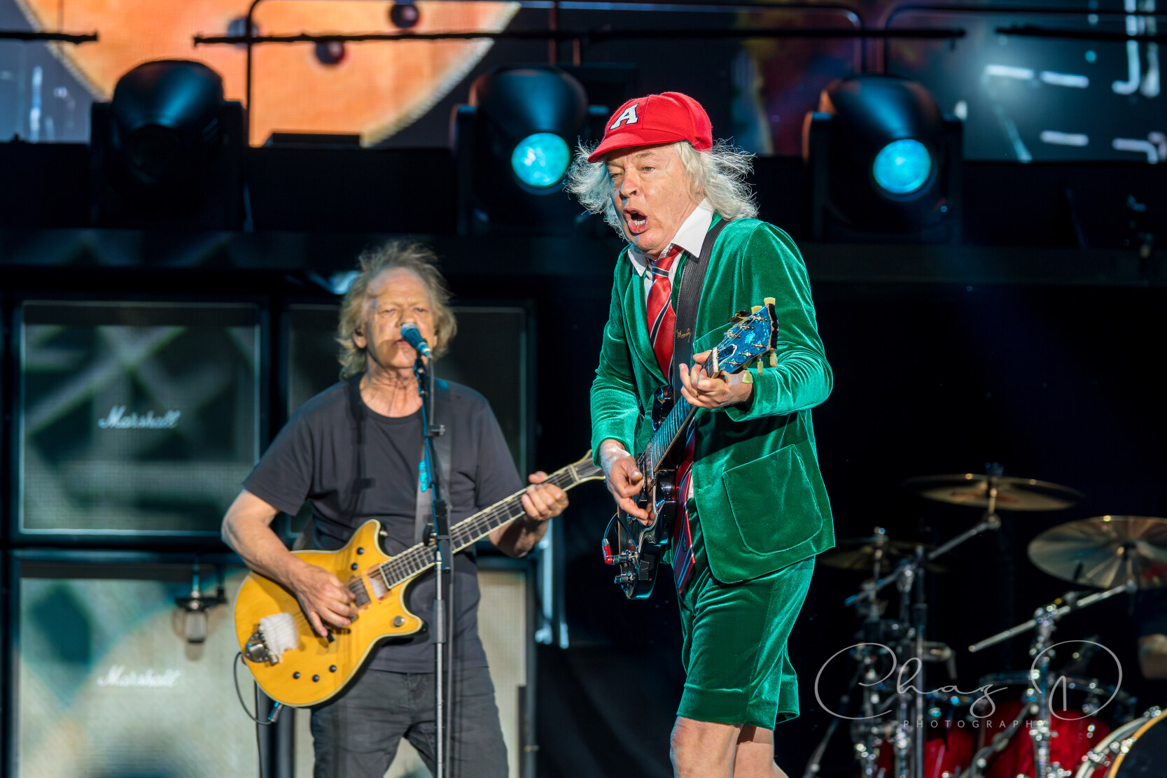 Under the warm Florida night on May 16, 2025, AC/DC detonated Raymond James Stadium with the kind of no frills, high voltage rock show that made their legend. Seventy year old Angus Young—still schoolboy suited—whipped across the stage in endless duck walks, peeling off solos during “Thunderstruck” and “Shoot to Thrill” as if four decades hadn’t passed. At center mic, 77 year old Brian Johnson’s gravel edge howl sliced through the humid air, rallying 60,000 fans on every chorus of “Back in Black” and “Hells Bells.” The production stacked towering amps against a wall of LED screens, showering the crowd in strobes while the rhythm section hammered each riff with locomotive precision.
