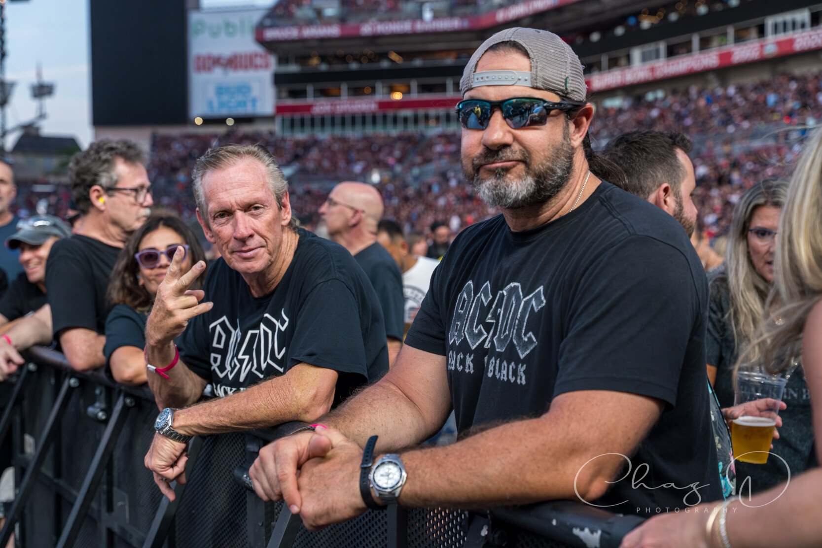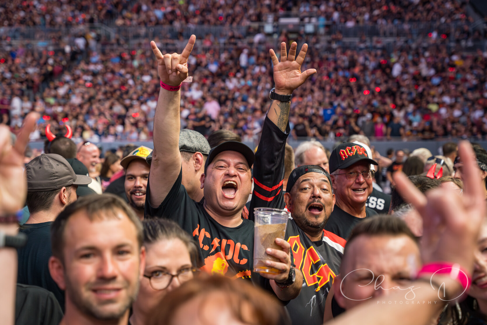 For me, the spectacle carried an electric déjà vu: I first saw AC/DC as a teenager at Hampton Coliseum in Virginia, and Friday’s show felt like that night writ stadium size. The years have only added pyrotechnic muscle—none more dramatic than the finale. When the opening chords of “For Those About to Rock (We Salute You)” rang out, a battery of cannons ringed the stage. With every chorus, multiple blasts thundered through the stadium, rattling seats and lighting the sky in fiery flashes while Angus spun in circles, riffs screaming from his SG. As the smoke drifted over the field and Brian shouted the song’s final salute, the crowd answered with a roar that said what the booming guns had already proven: AC/DC still fires on all cylinders, and rock and roll still belongs to the loud.