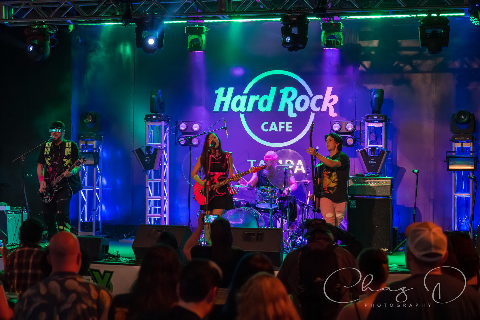 Back in the day we used to have high school talent shows, even my band Babyface enjoyed a couple, and those eventually morphed into Battle of the Bands competitions. With the decades of talent and with the multitudes of extremely capable musicians in the Bay Area, it’s kind of cool to see them make a resurgence. The Seminole Hard Rock Hotel & Casino, along with local radio station 97x, have once again joined forces to sponsor Hard Rock Rising – Tampa, a Battle of the Bands Competition. An annual event they started back in 2017 that showcases bands from in and around Tampa. This past October 28th, three finalists and one wild card group were announced, and last night (Wednesday November 19), the four bands performed on The Hard Rock Cafe stage. There were five categories included in the judging criteria – Originality (30 percent), Musicianship (30 percent), Vocal Ability (20 percent) and Marketability (20 percent). The judges for this years competition were on-air personalities from 102.5 The Bone, Drew Garabo and John Senning, and the Hard Rock’s own Director of Talent and Events, Steve Minnick. Hosting the night’s festivities was the cosplay chameleon and super cool Hard Rock Entertainment Manager, Alexis Roos. Along with immense exposure, radio play, and a custom Telecaster as a trophy, the winning group will open next year’s 97x Next Big Thing on the main stage in front of thousands of rabid rock devotees.